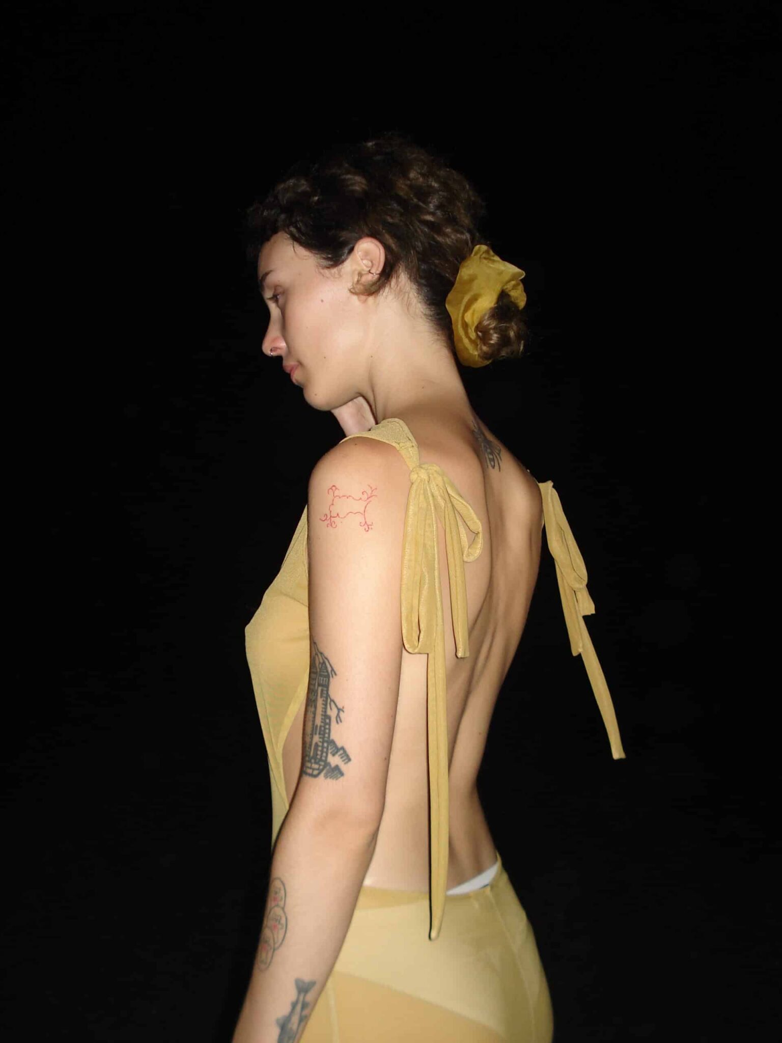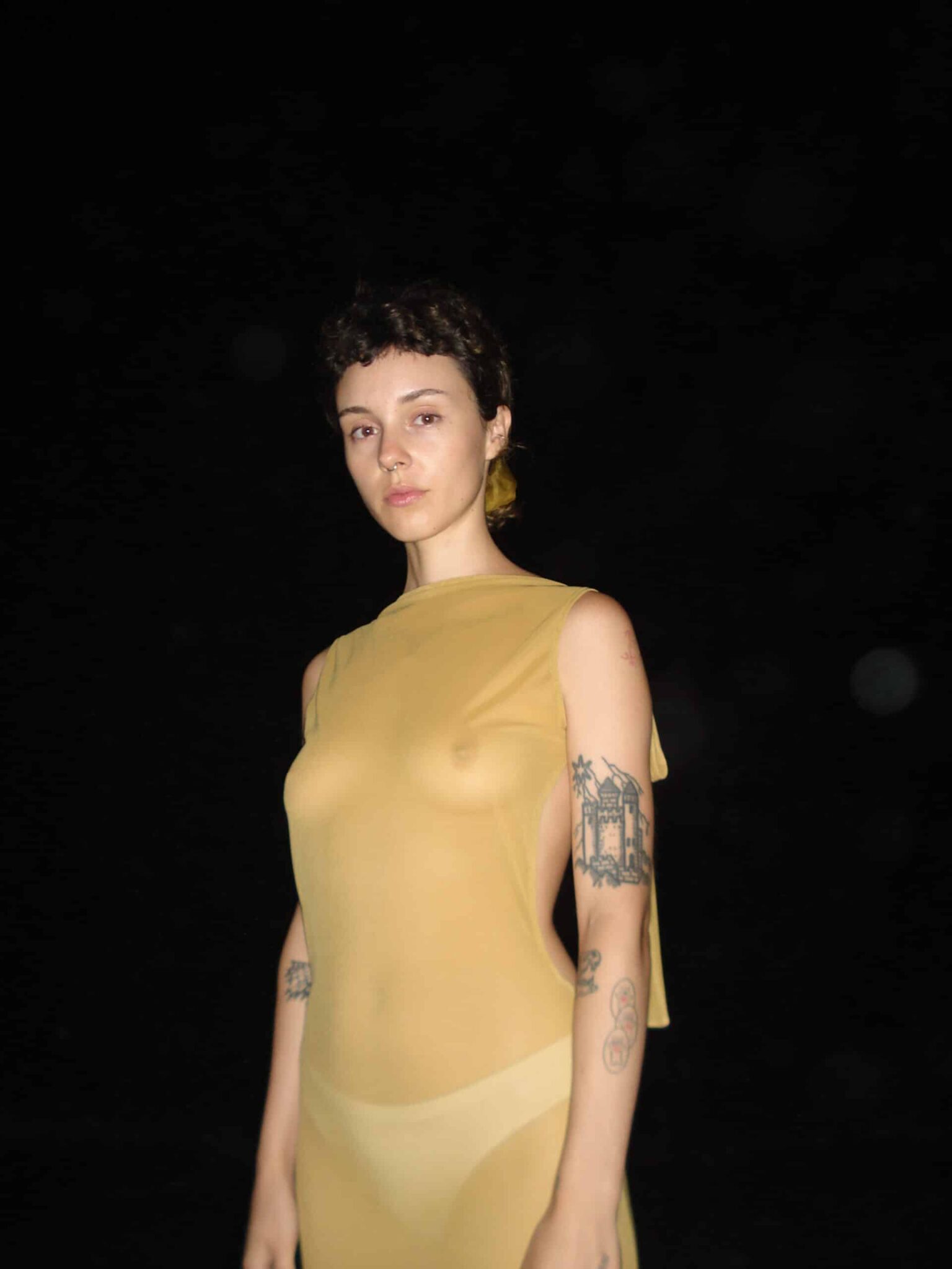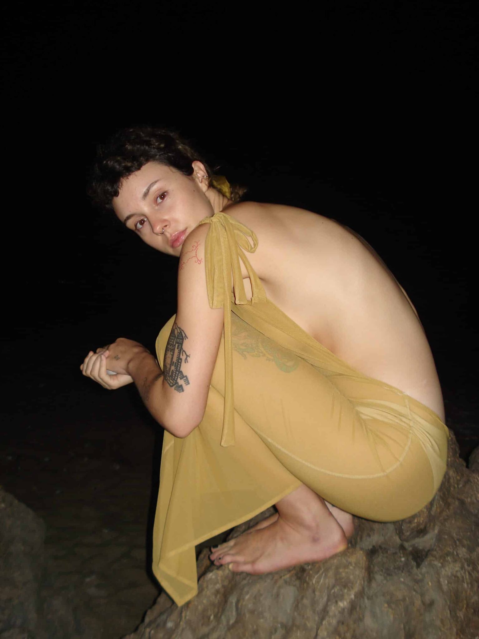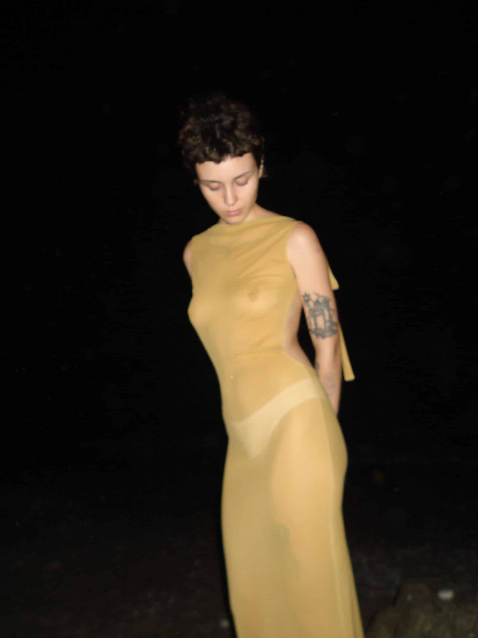 BACKLESS GOLDEN MESH dress