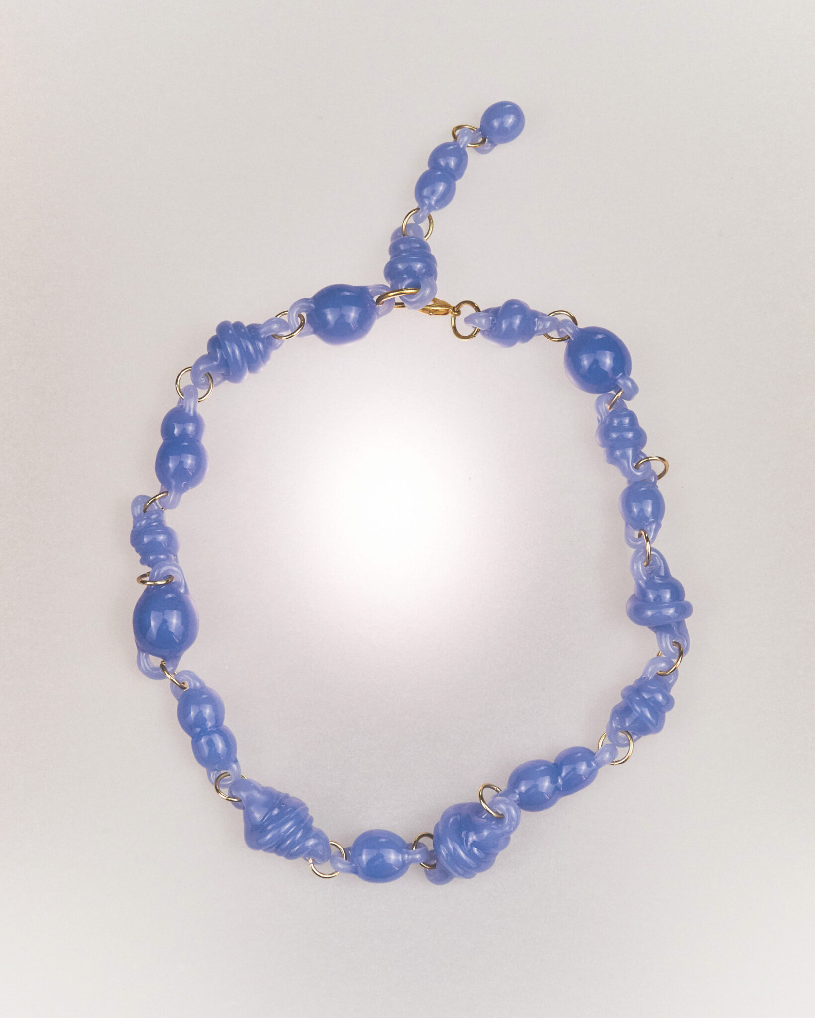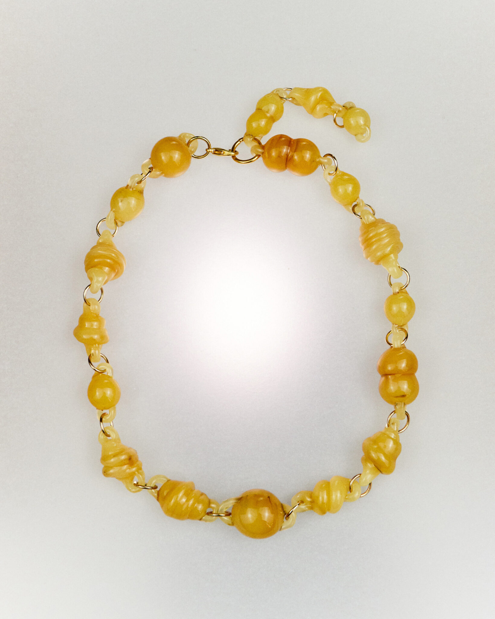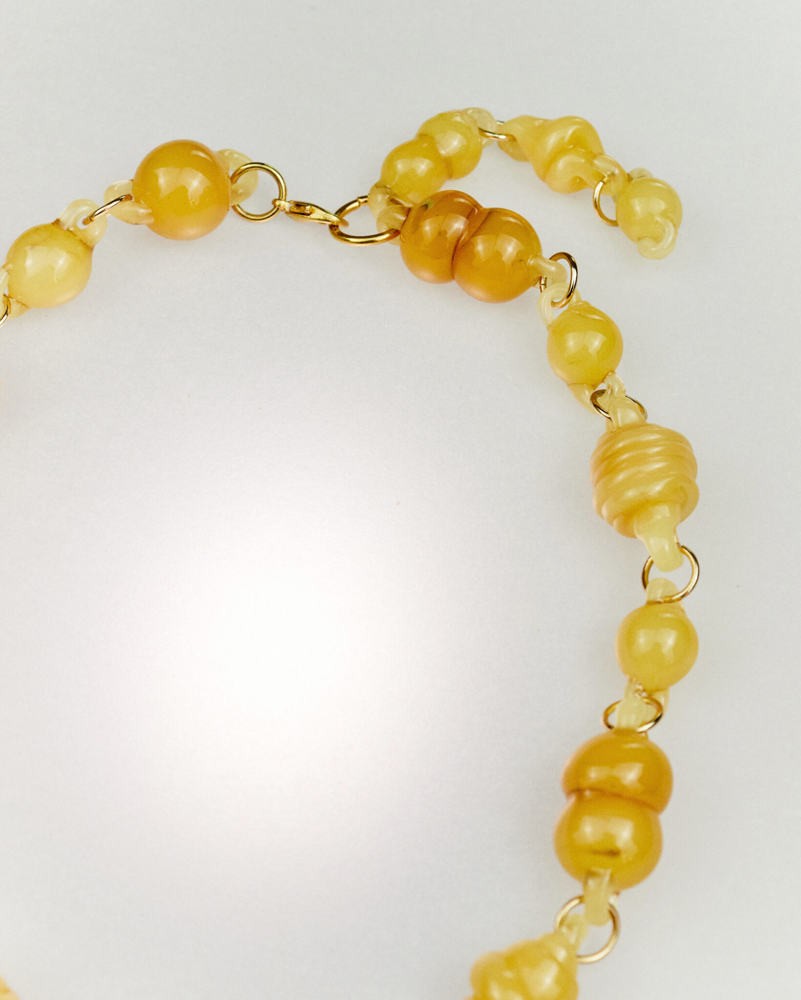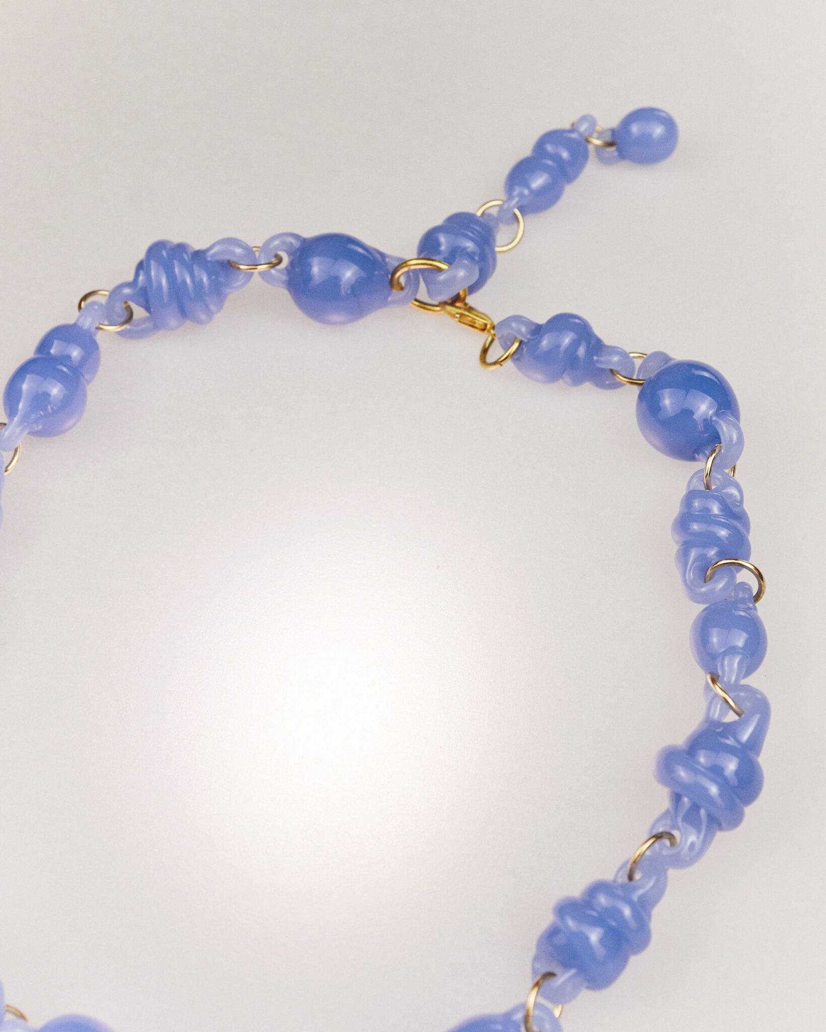 Handmade borosilicate glass necklace / choker with gold plated brass (nickel free) fastening.