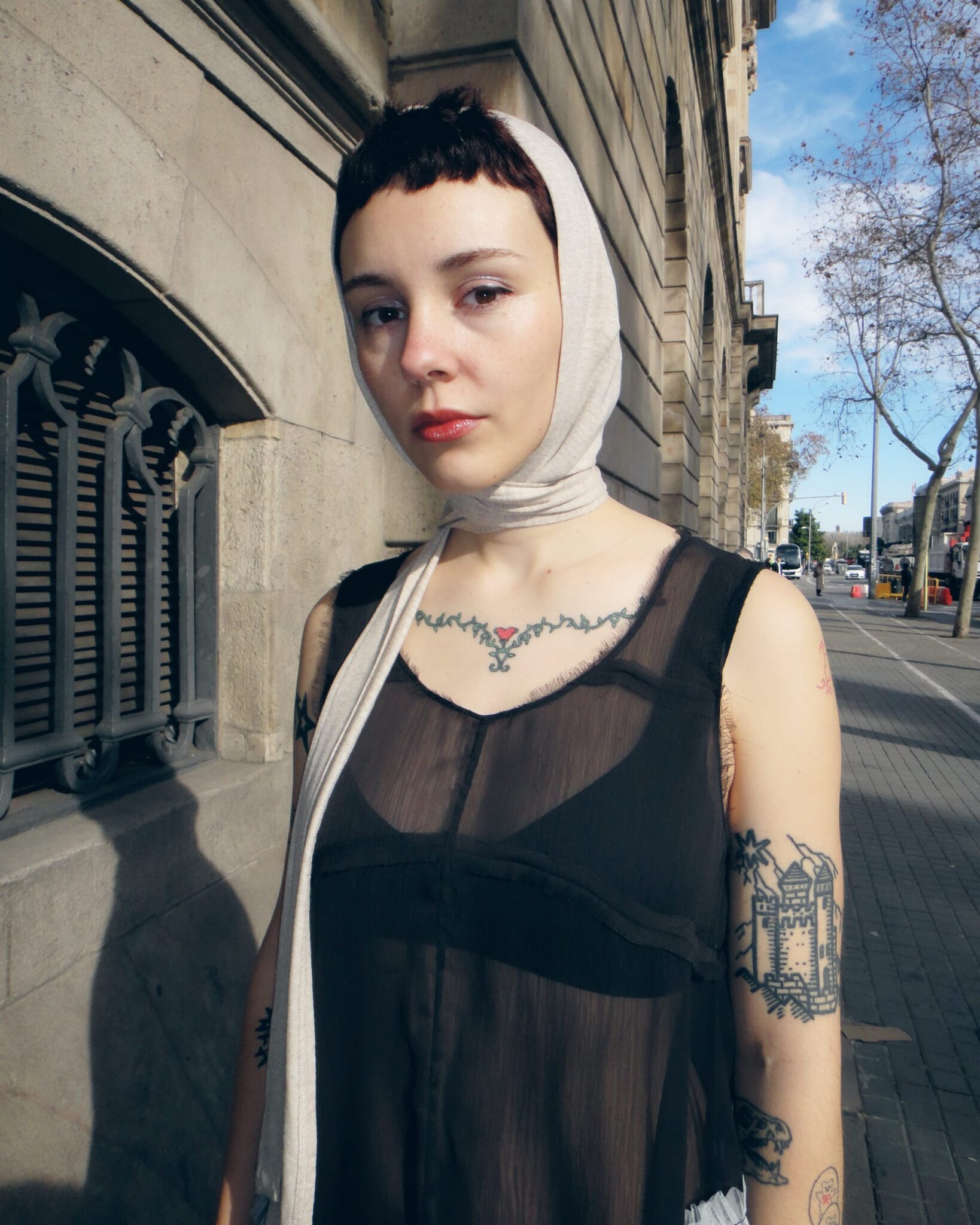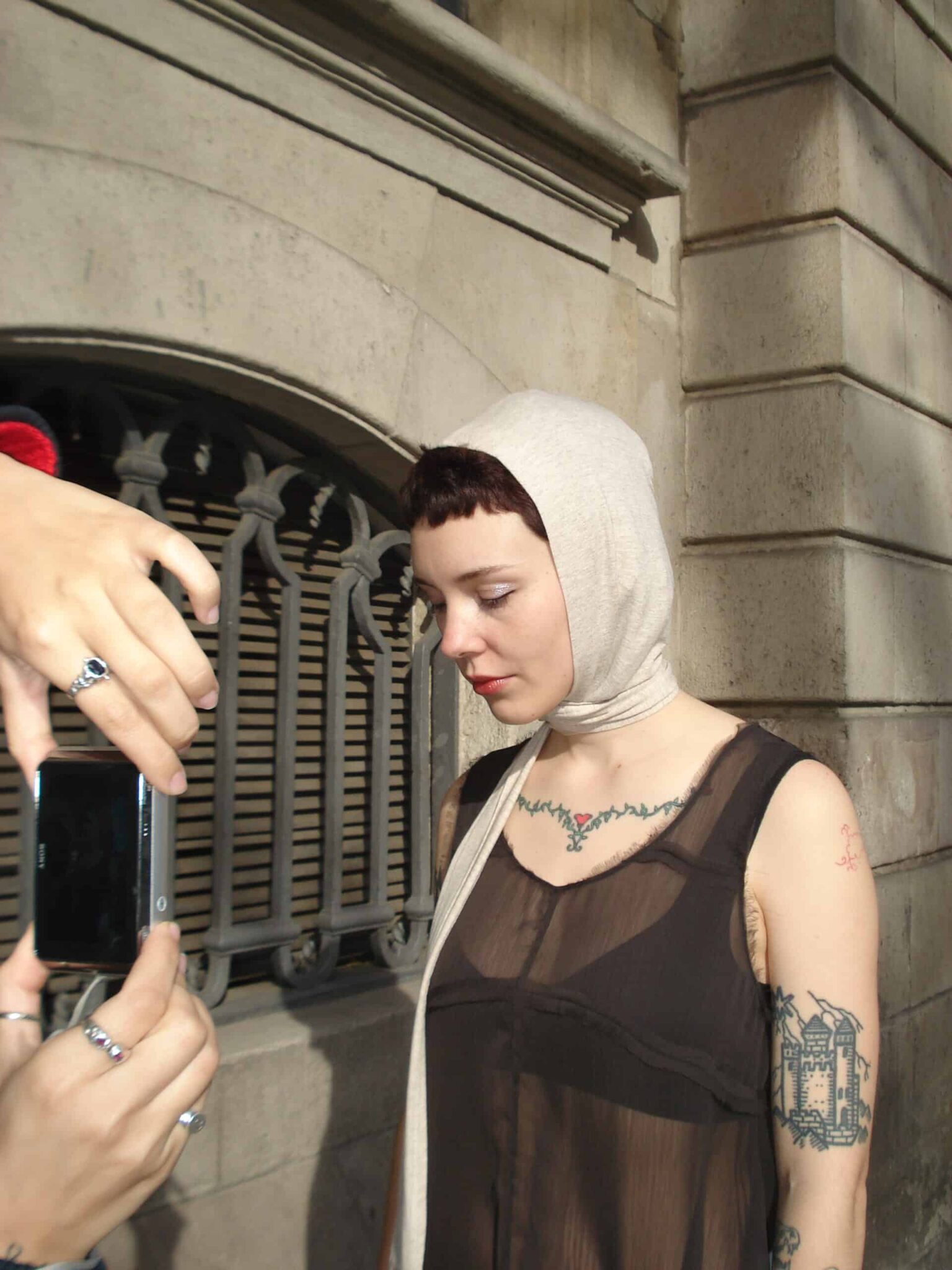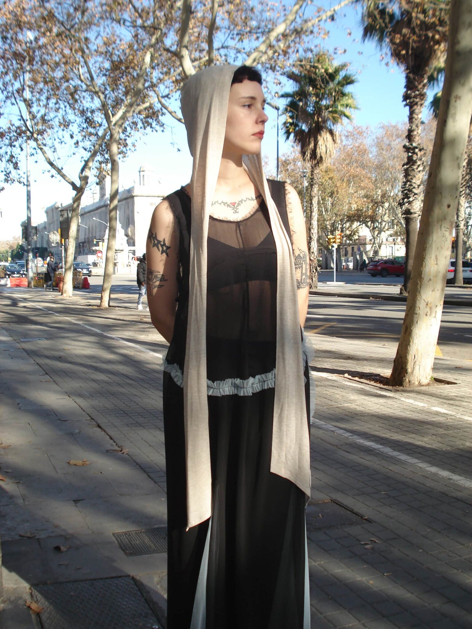 Ultra soft and thin longsleeve hood in beige melange thin jersey.