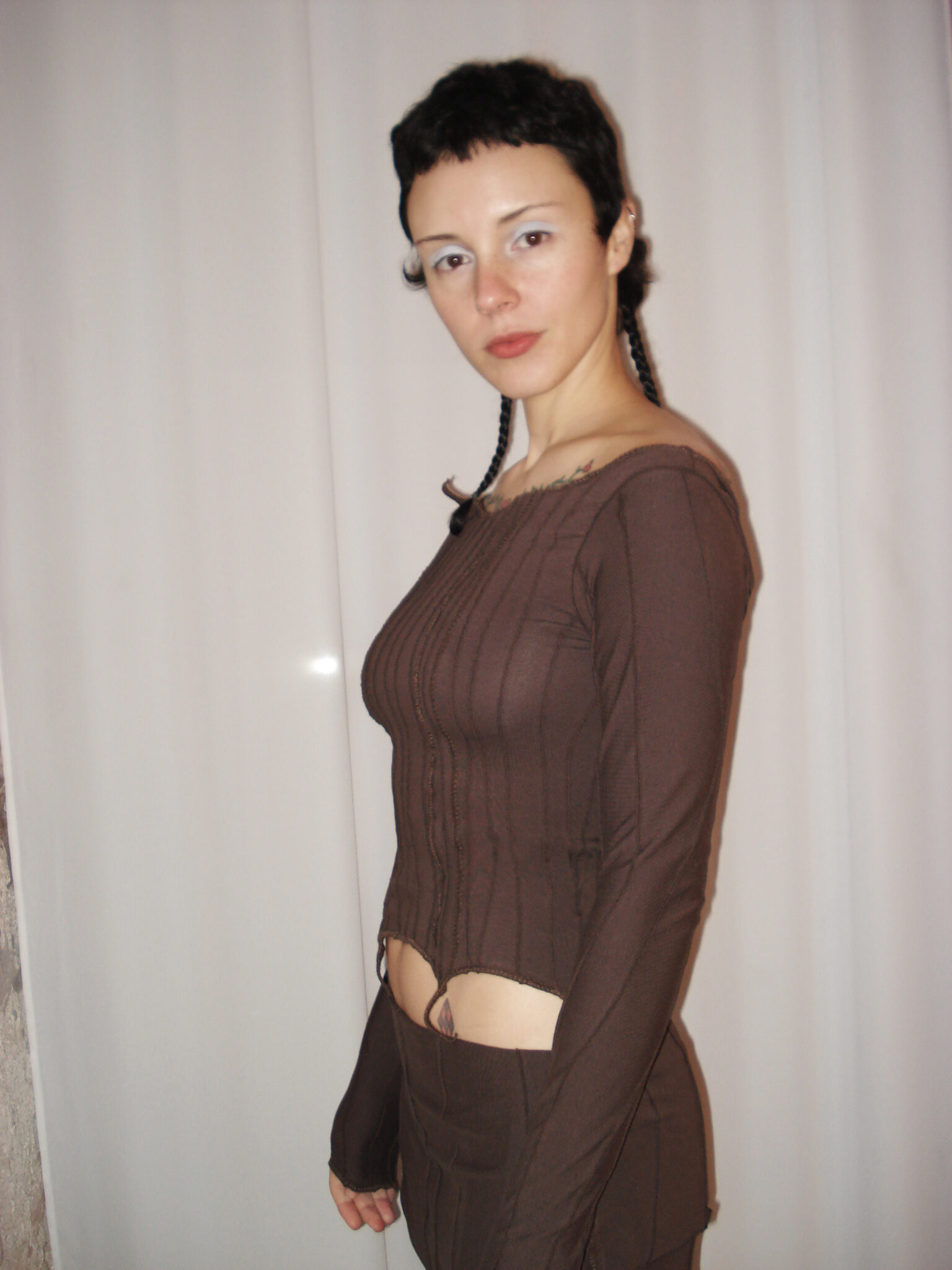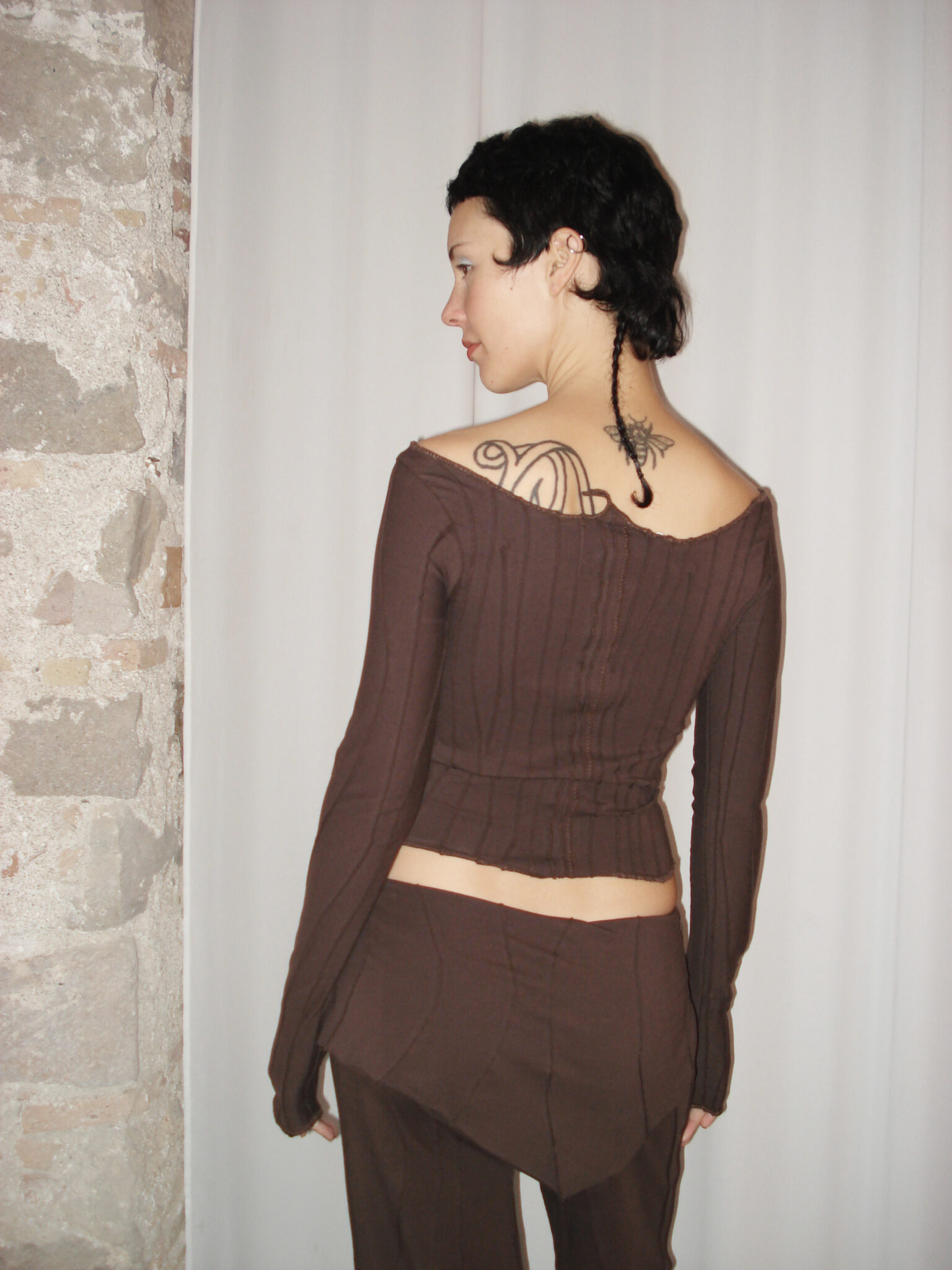 Long Sleeve Bandage Top assembled from the fabric scraps and ‘cut-offs’ of production. Asymmetric design with a unique suture and seam formation on each item. Handmade by patchwork method. Finished garments may vary due to artisanal manufacturing.