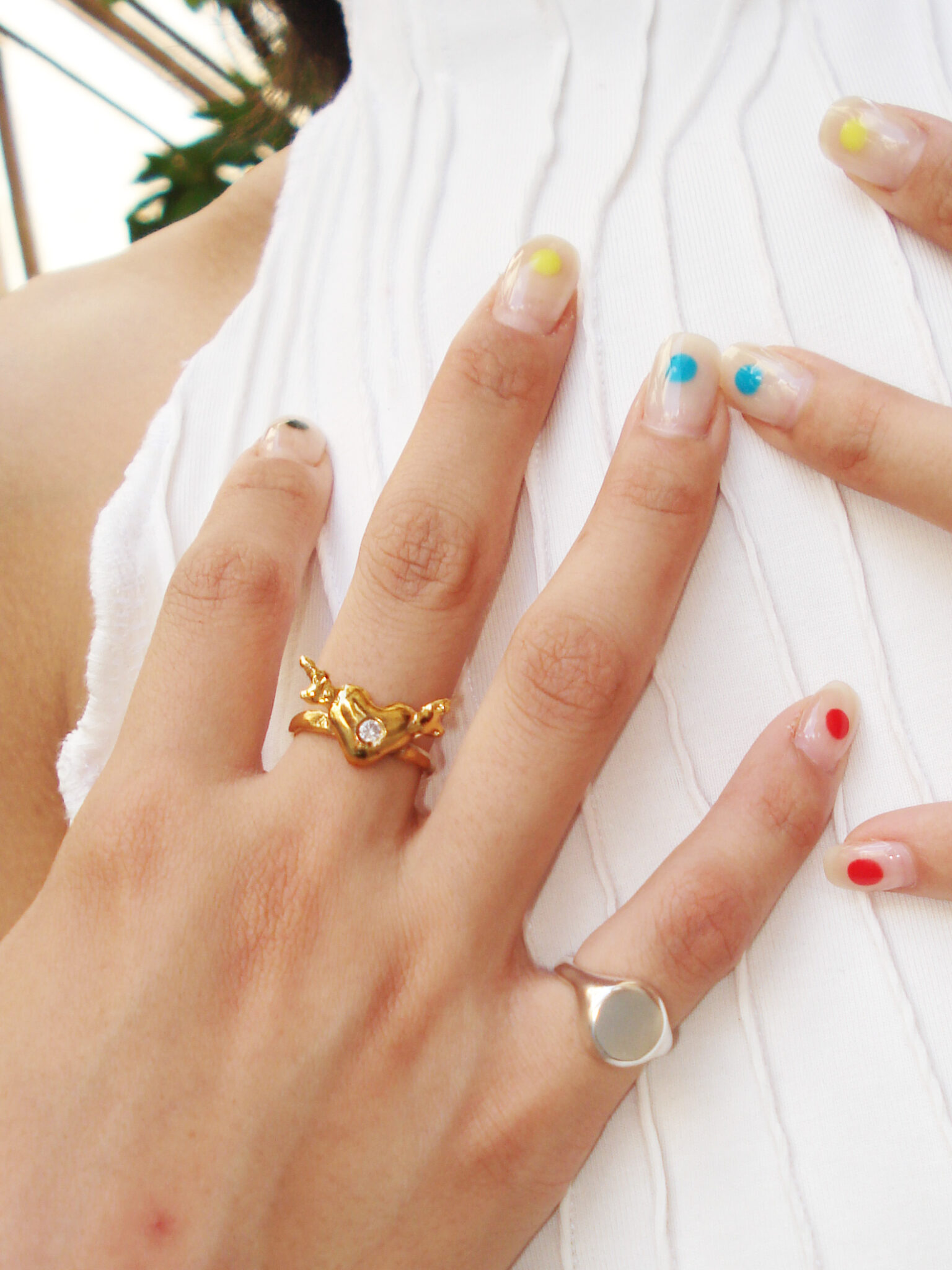 Ring made of vermeil gold plated bronze and synthetic stone.