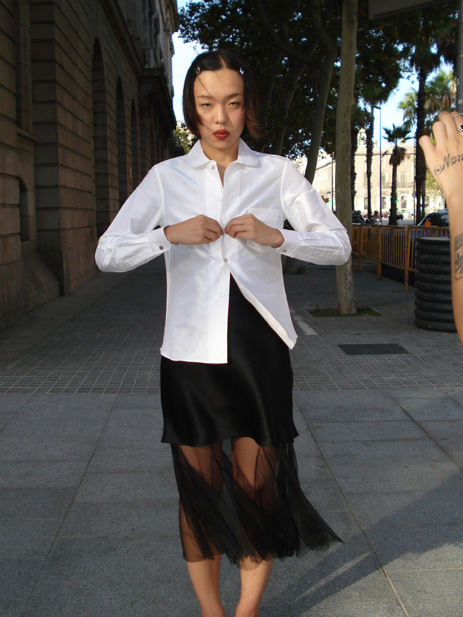 Lightweight fabric without stretch.