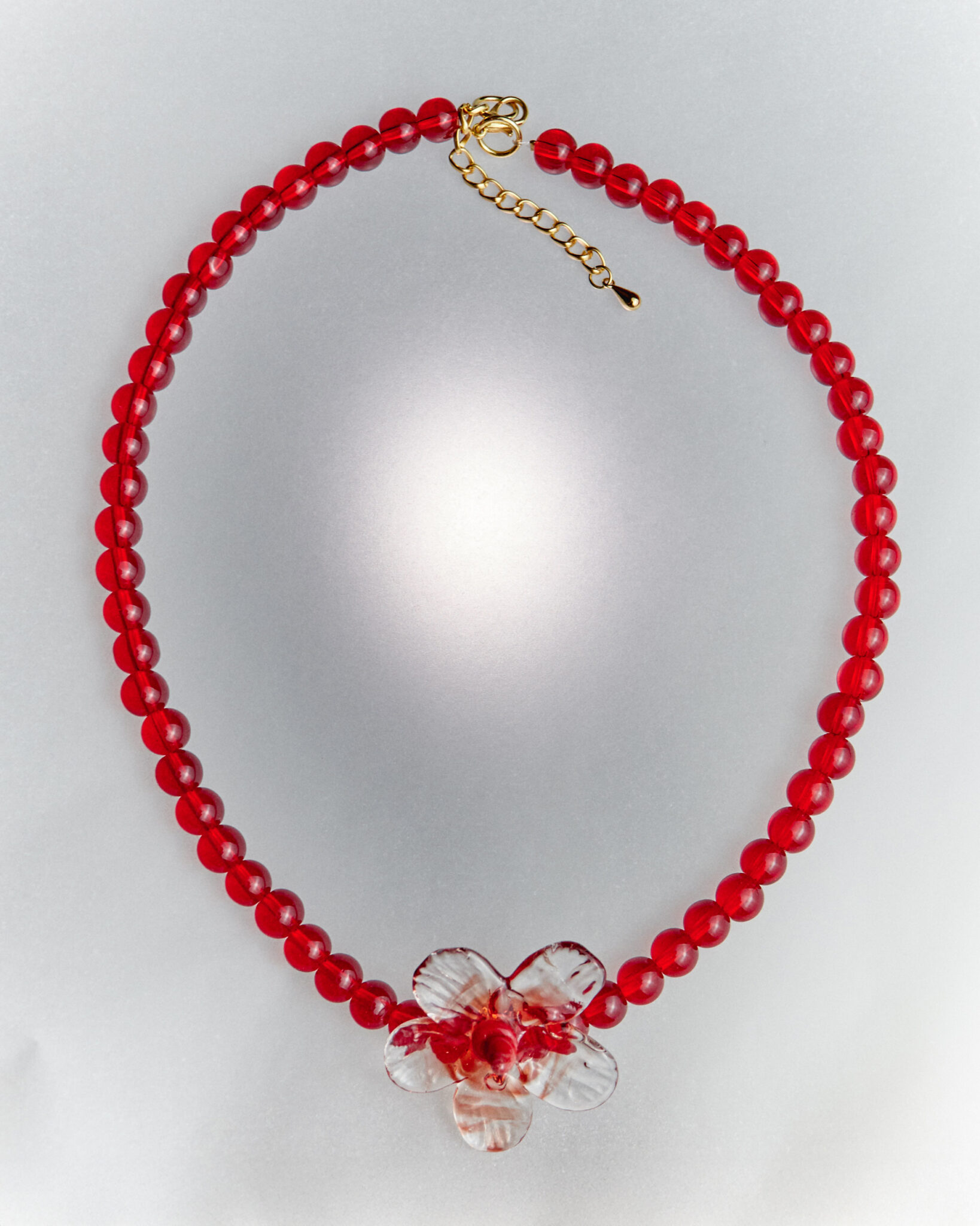 Borosilicate glass and gold plated brass (nickel free) necklace.