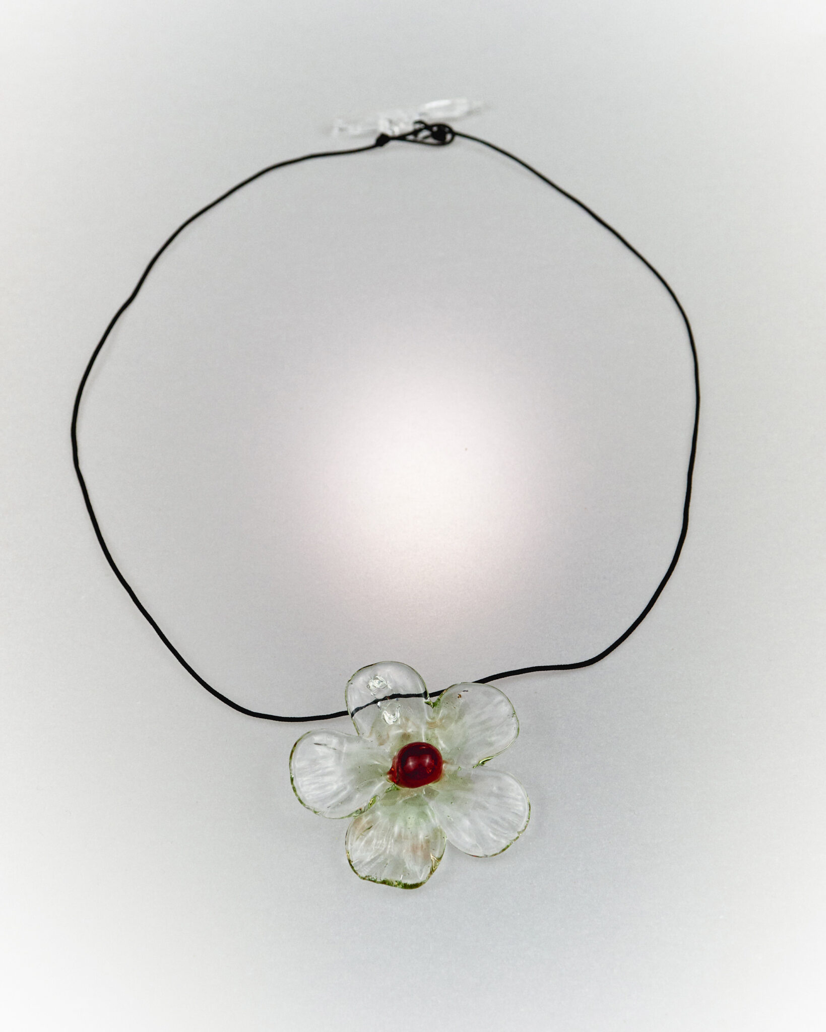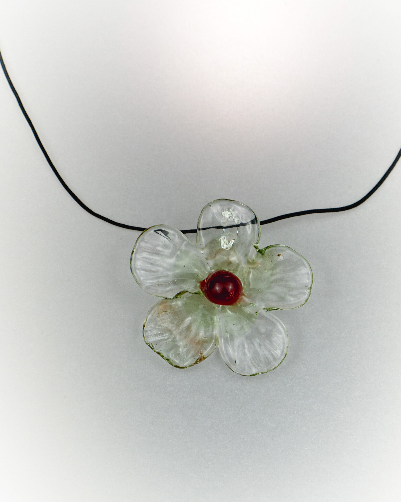 Handcrafted borosilicate glass pendant and cotton cord necklace.