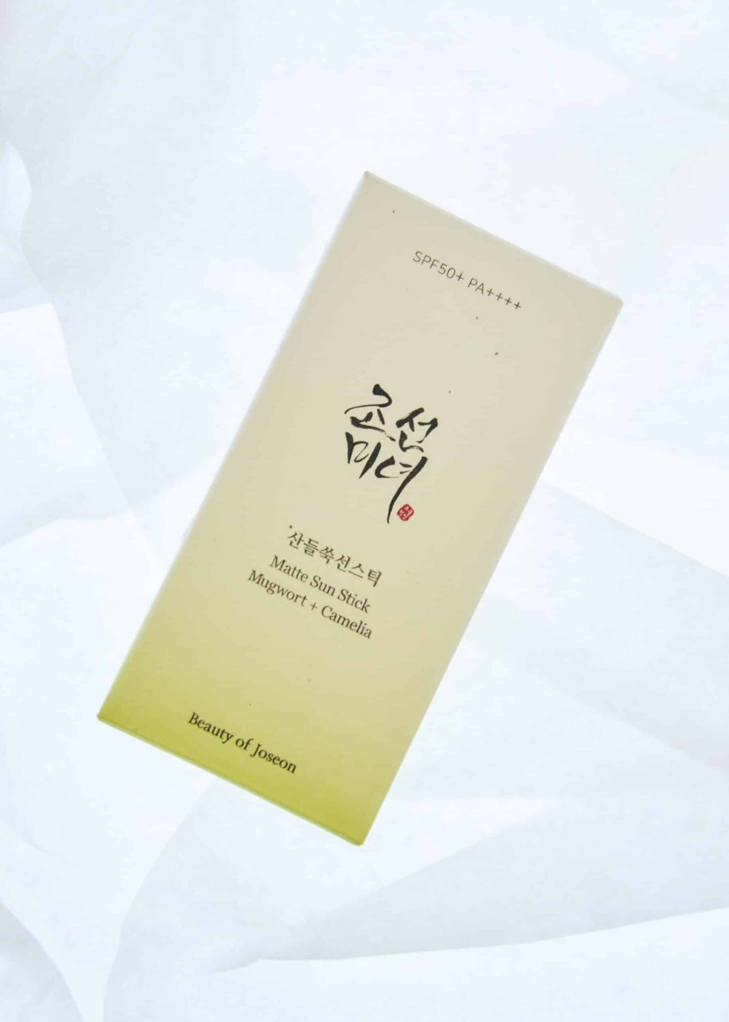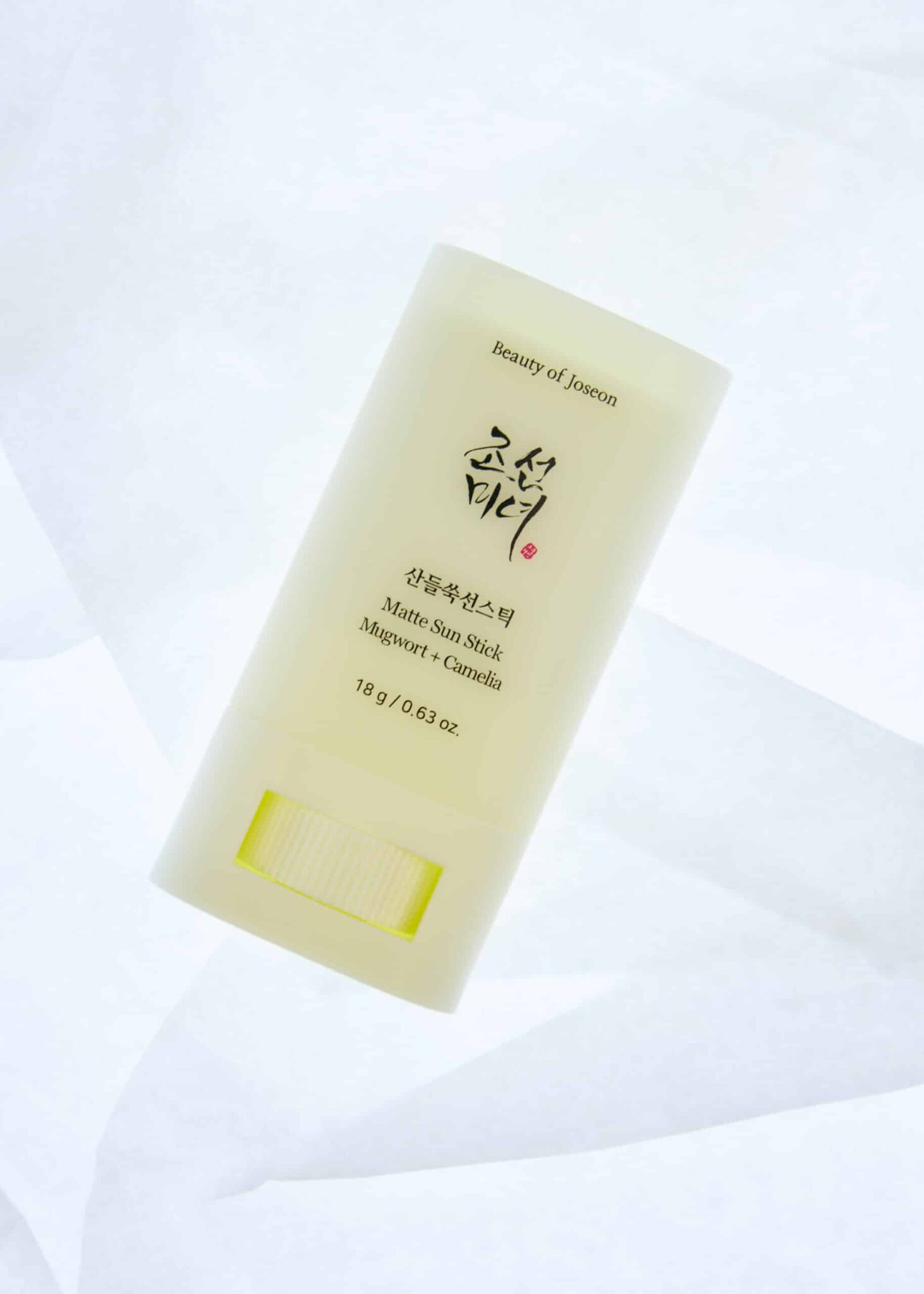Vegan sun protection stick with mugwort and green tea extracts, which help soften skin texture while preserving hydration