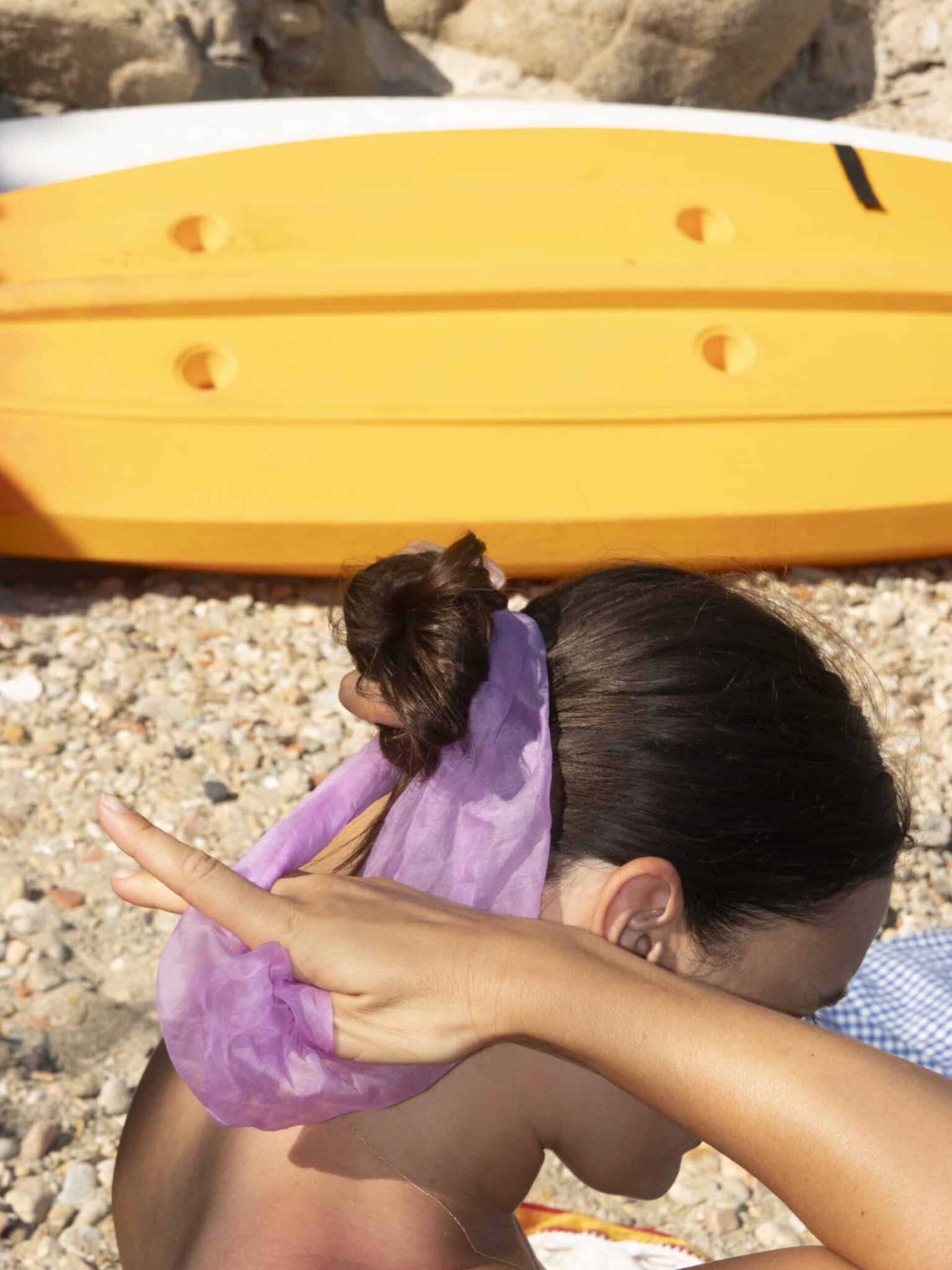 100% silk organza scrunchie in fucsia pink. Hand made in Barcelona. Adds a beautiful structure to your hairstyle.