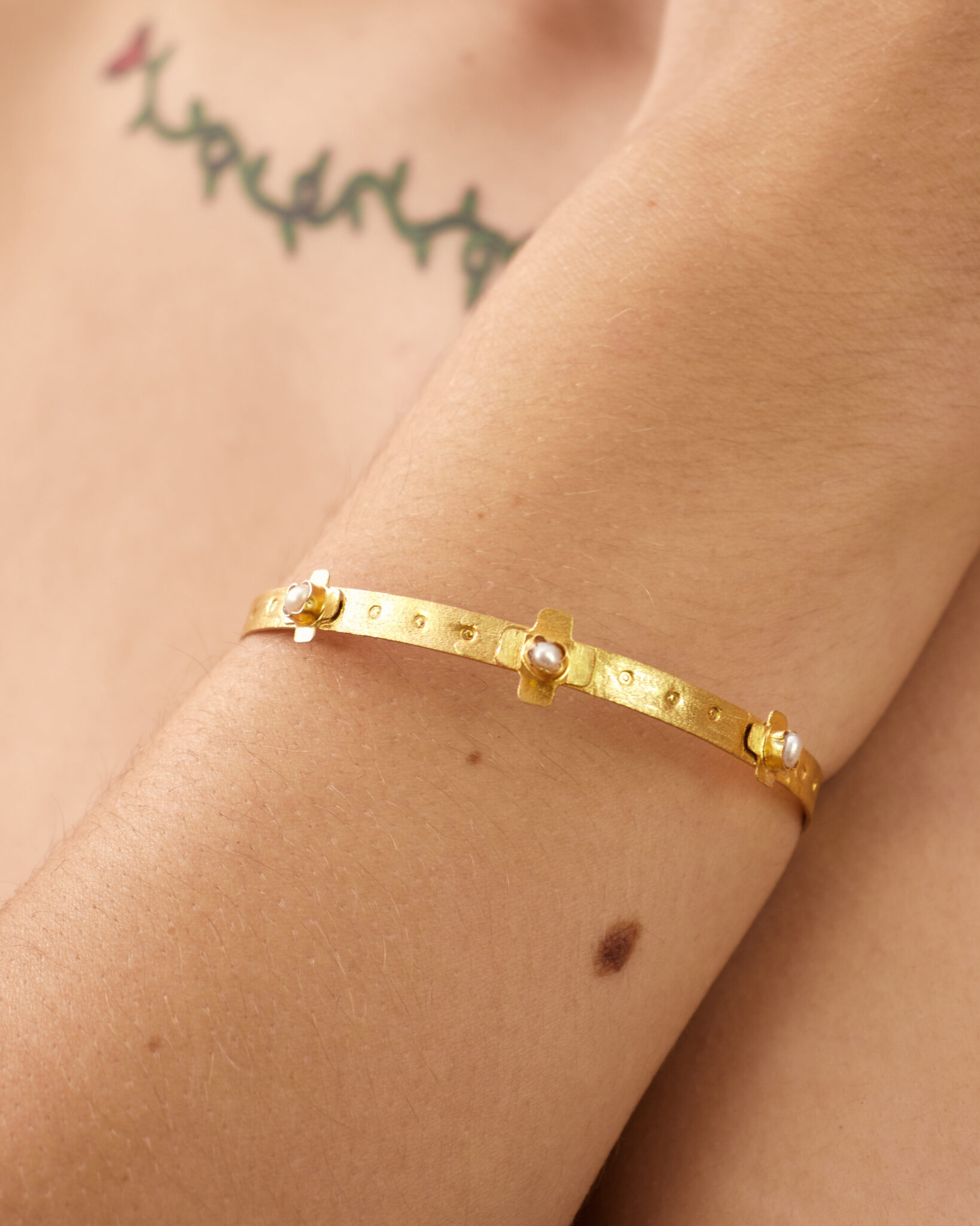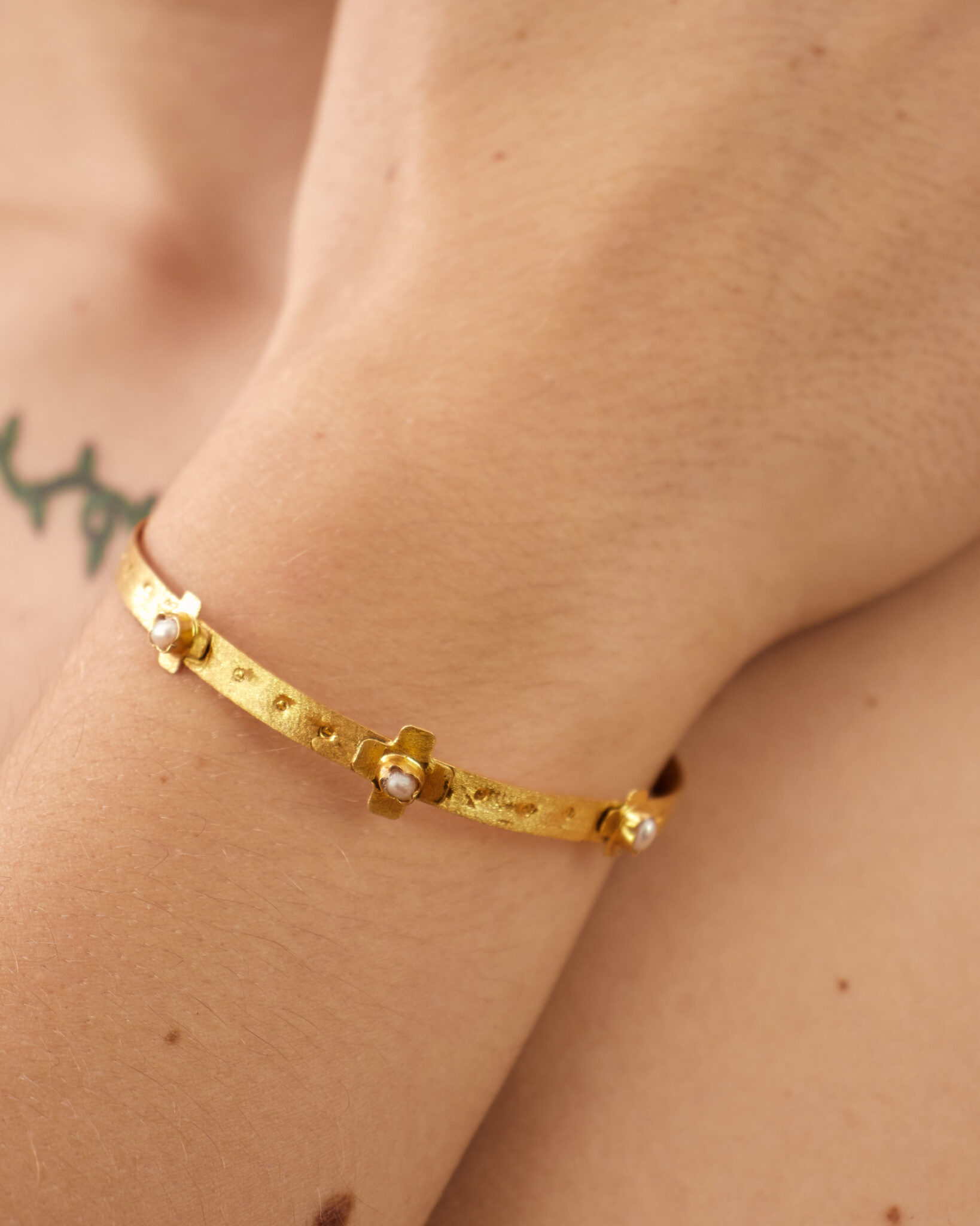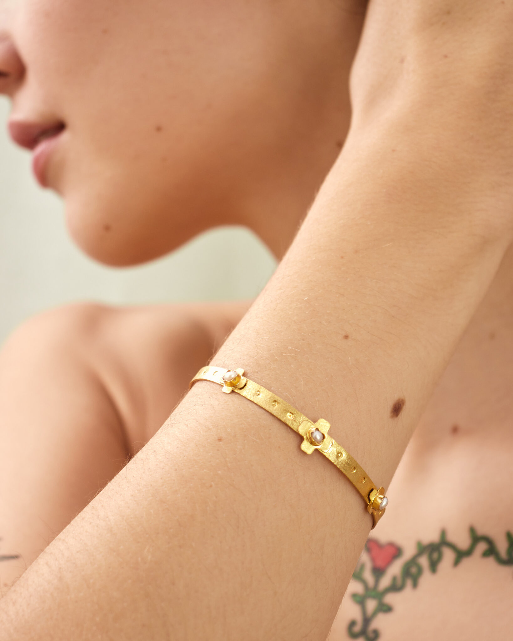 Palazzo bracelet is handmade, making each piece one of a kind, with slight variations in size and shape.