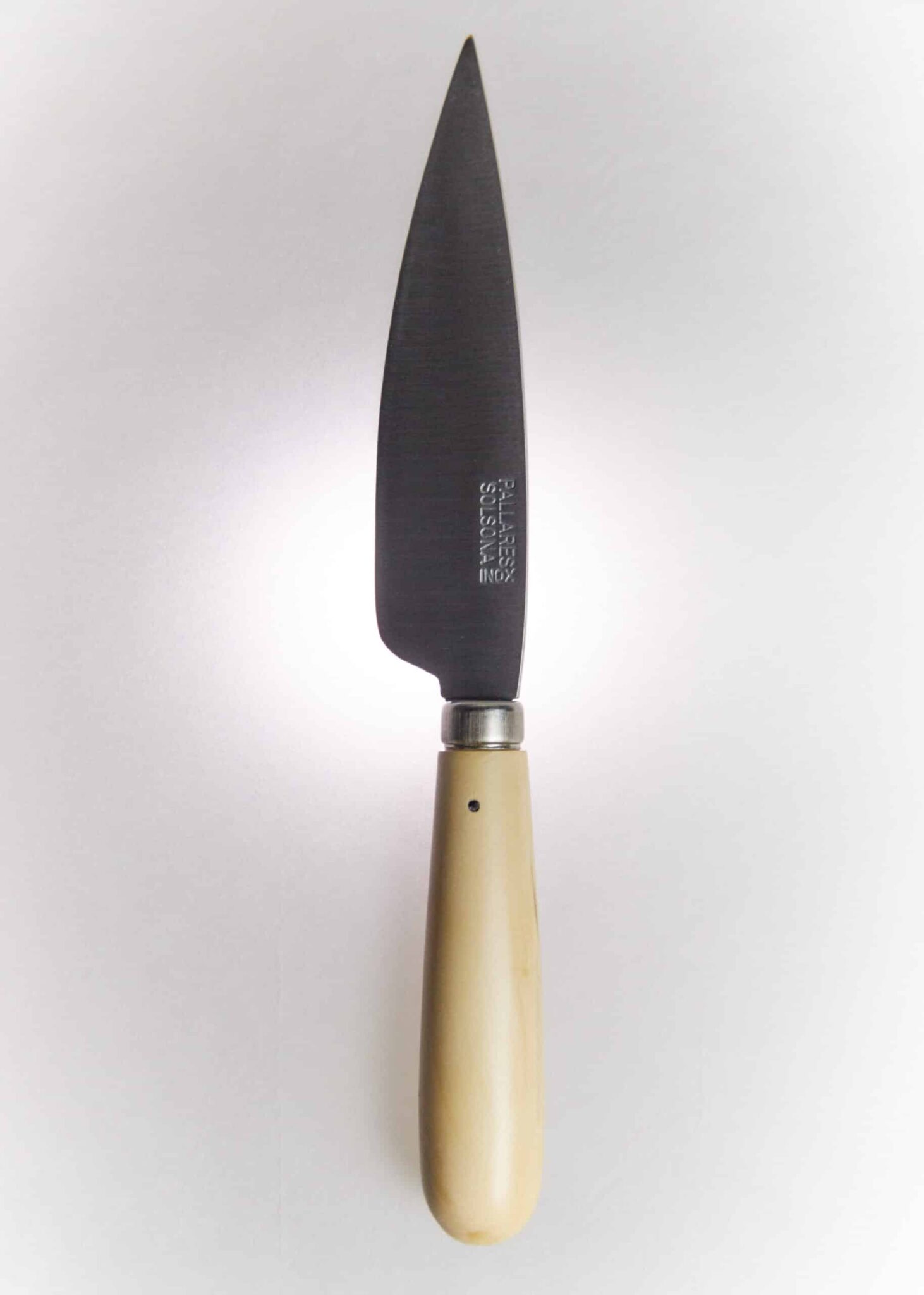 Pallarès INOX 11cm wide blade kitchen/table knife. Round boxwood handle. Not suitable for dishwasher.
