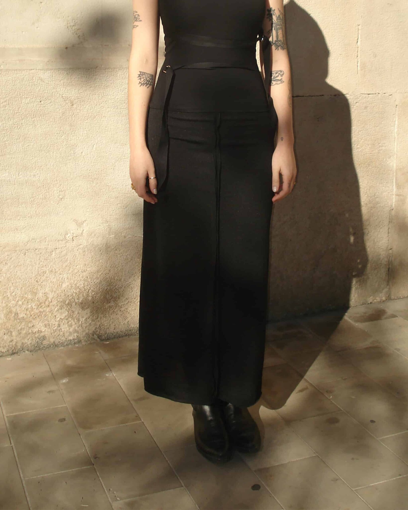 Ultra soft maxi skirt with panelled construction. Lighweight slightly transparent jersey with inside out seams. Elasticized waistband.