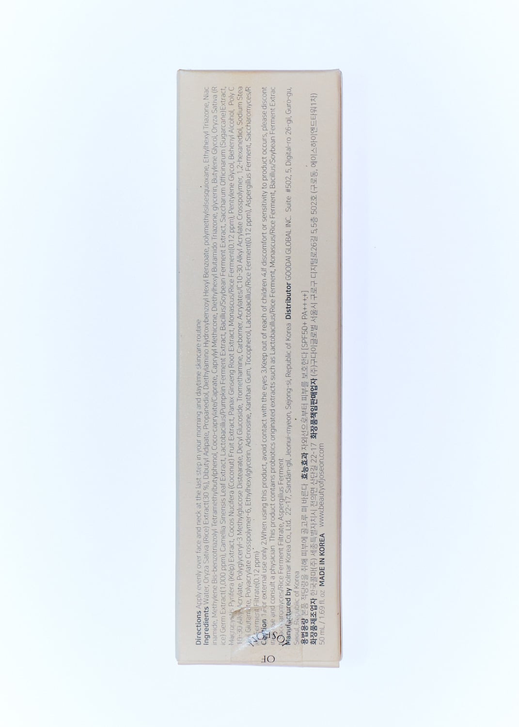 Vegan sunscreen, with SPF50+ PA++++, formulated with 30% rice extract and fermented cereal extracts that provide hydration and nutrition to the skin. Light cream texture that provides a dewy finish like that of a light moisturizer. After absorption, it provides a natural shine without a white trace.