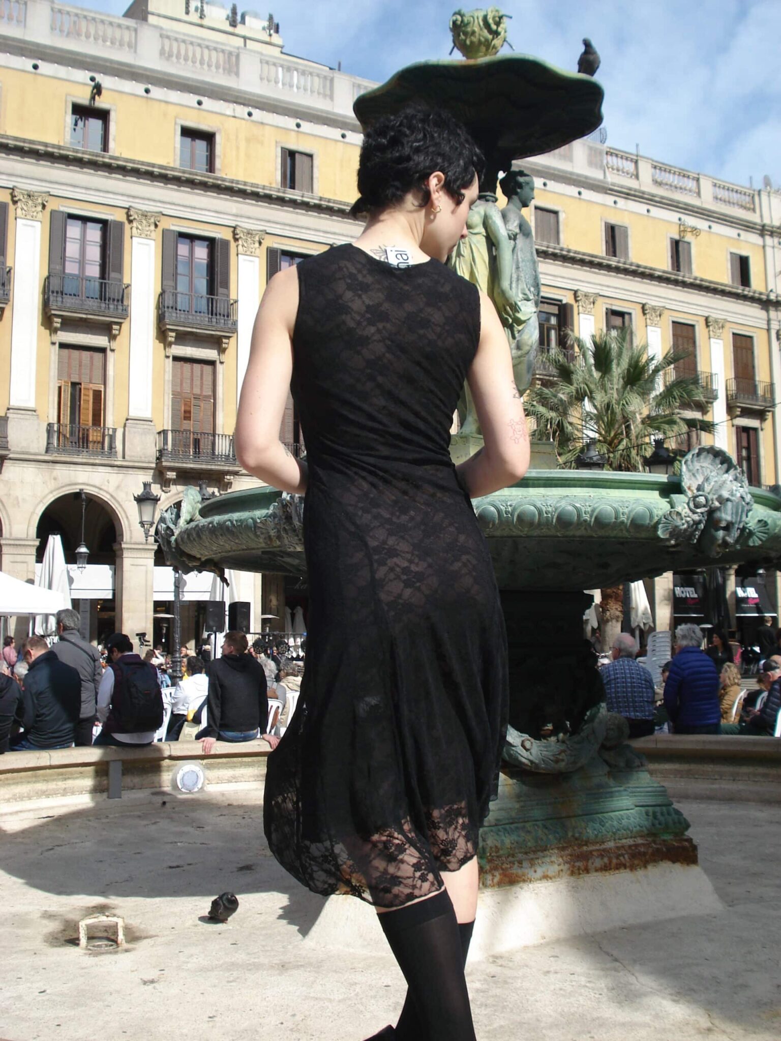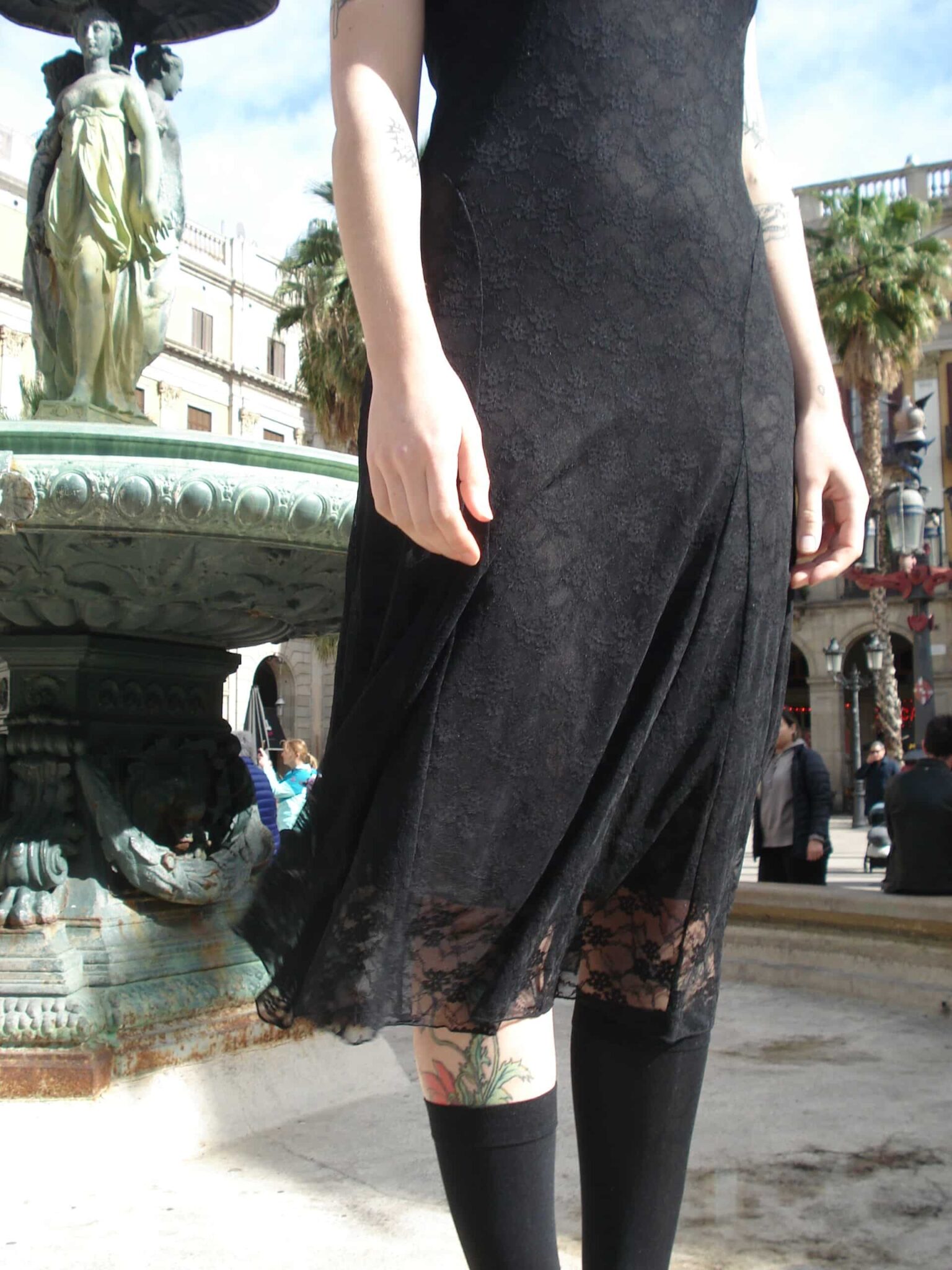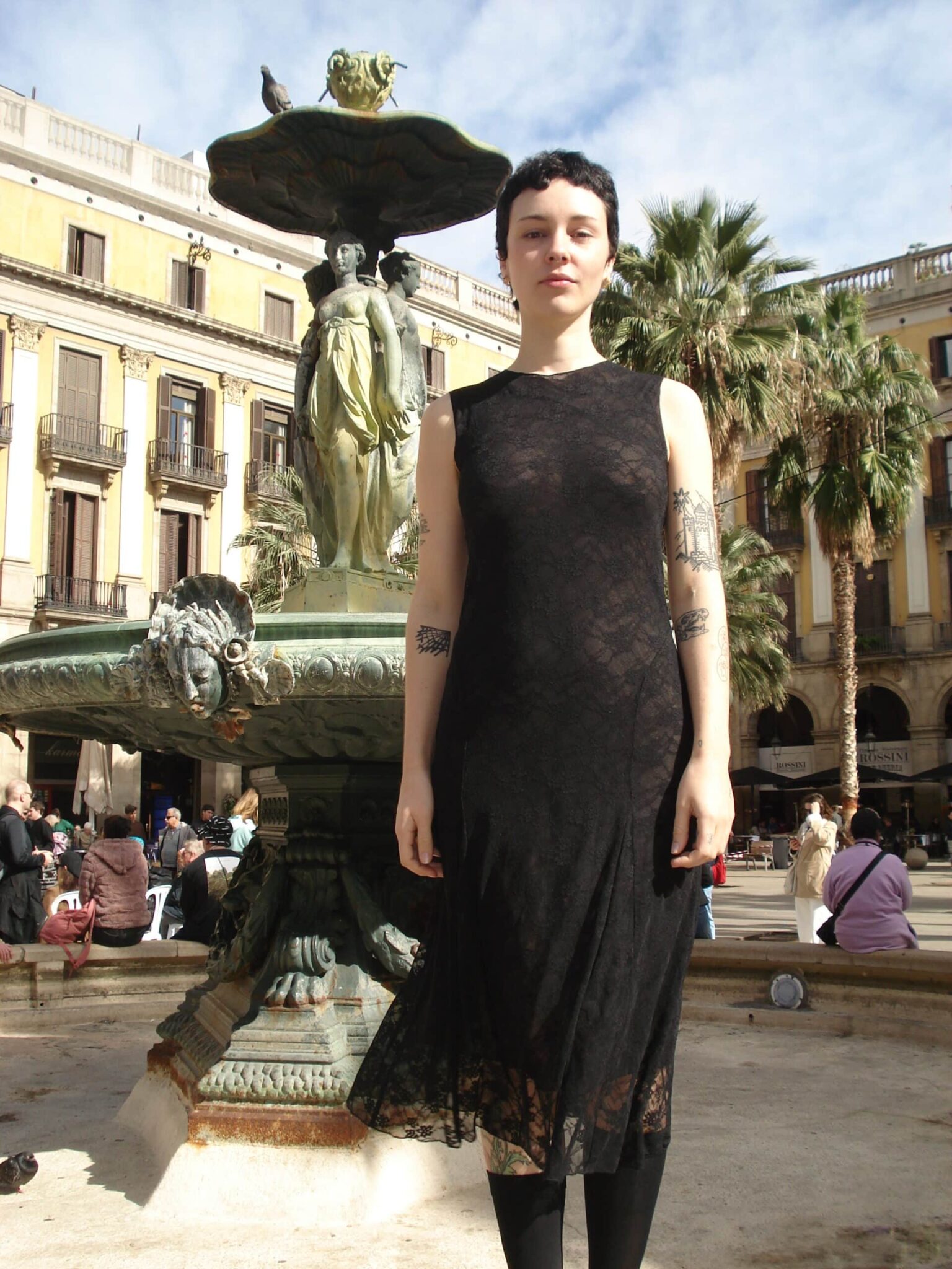 Classic black shade and features a midi length cut, as well as a sleeveless finish.