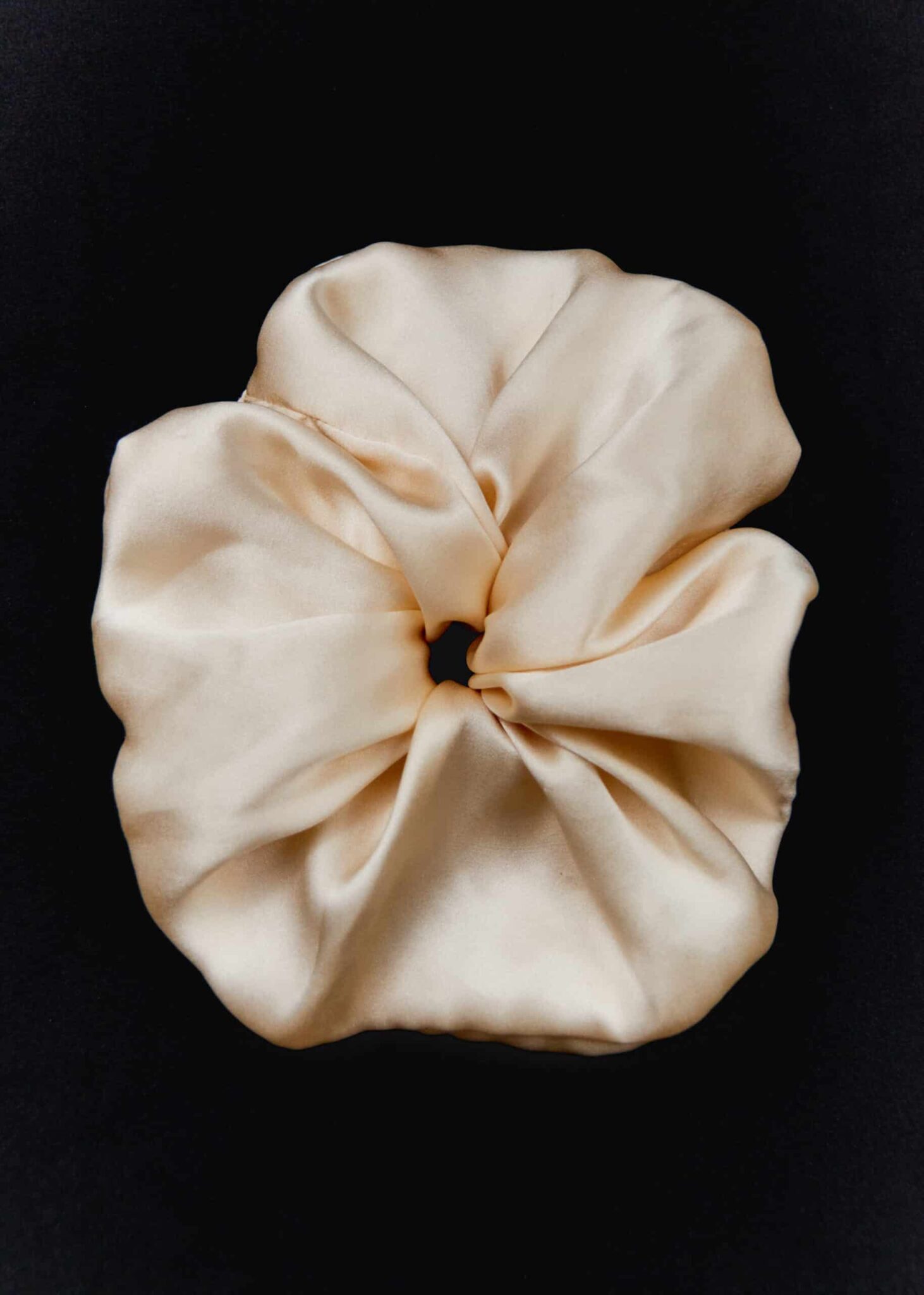 100% satin silk scrunchie in ivory. Hand made in Barcelona. Adds a beautiful structure to your hairstyle.