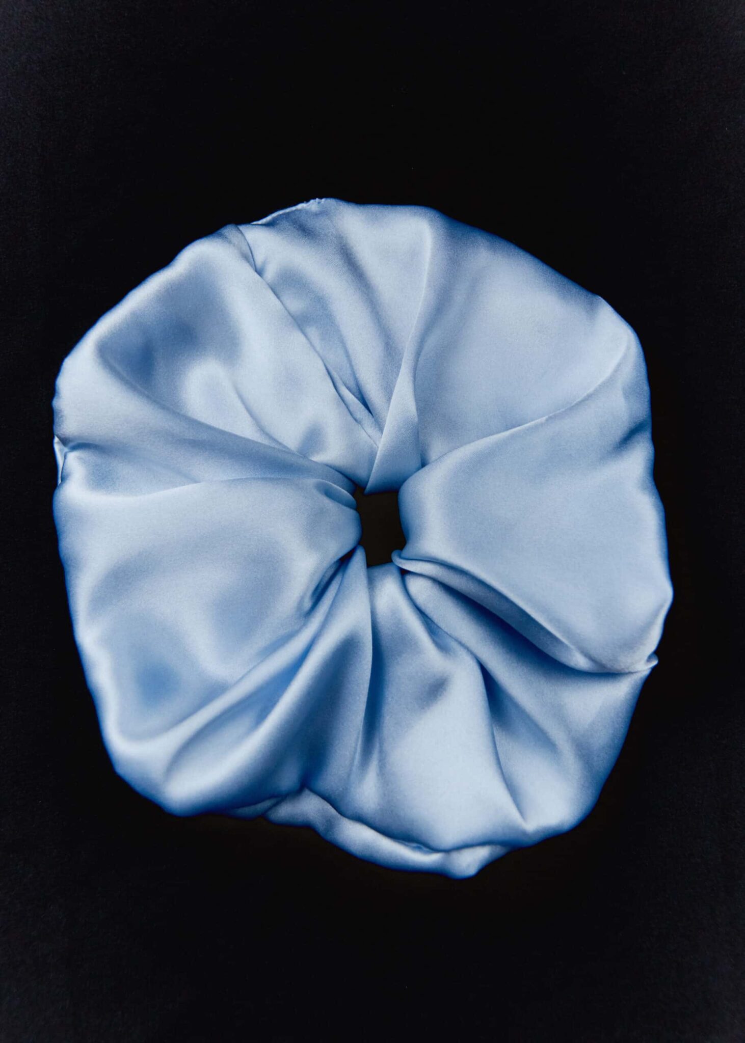 100% satin silk scrunchie in light blue. Hand made in Barcelona. Adds a beautiful structure to your hairstyle.