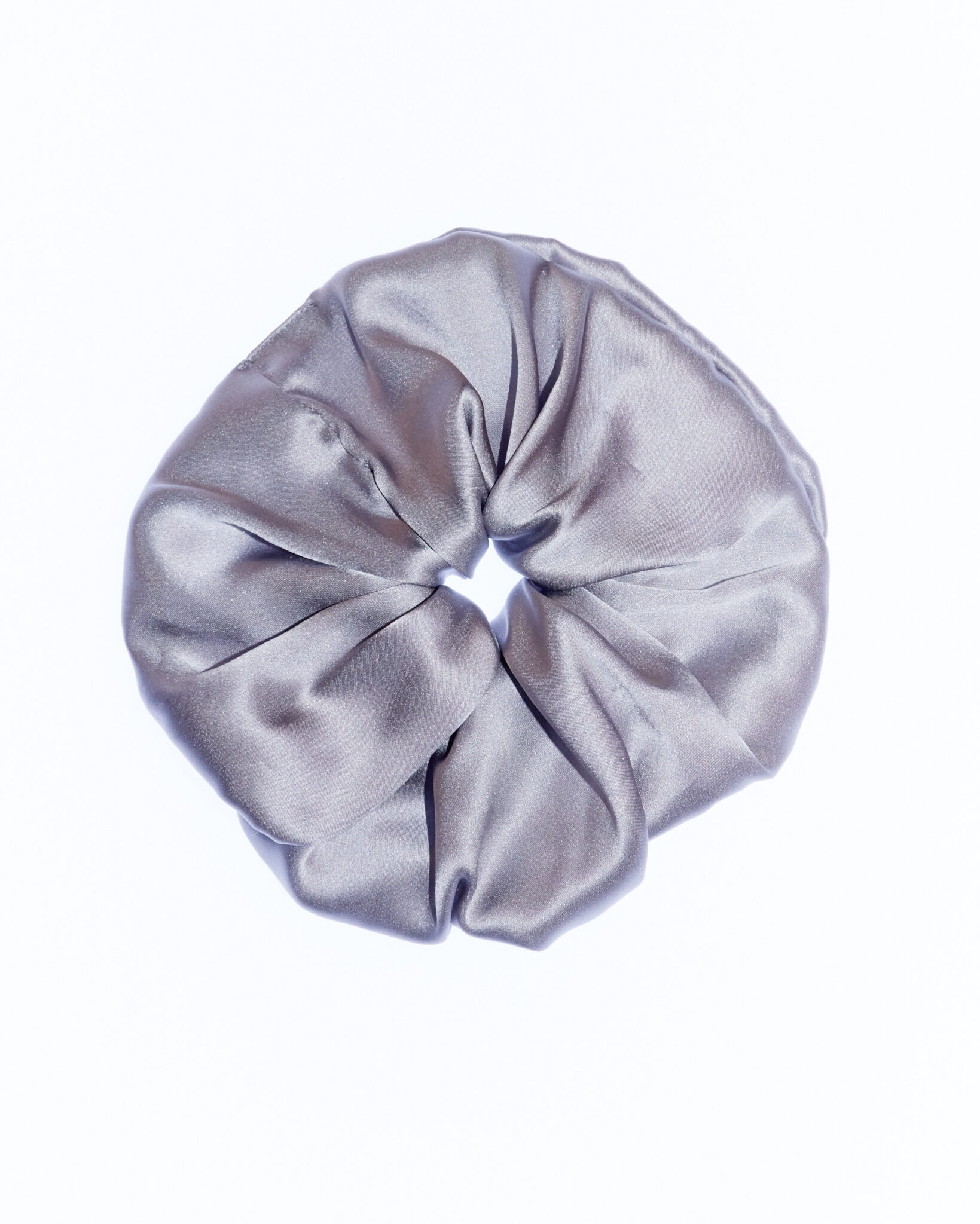 100% satin silk scrunchie in silver. Hand made in Barcelona. Adds a beautiful structure to your hairstyle.