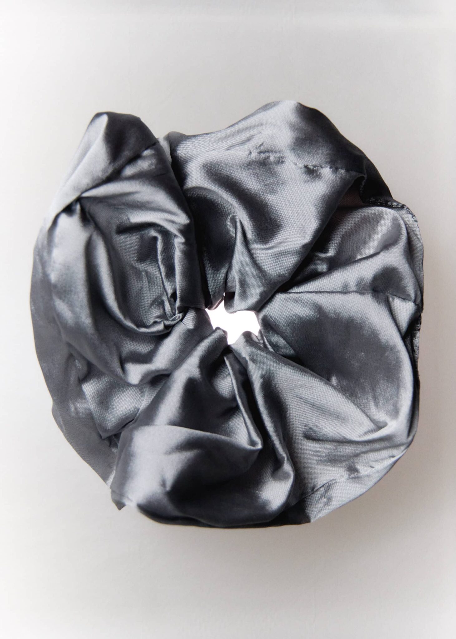 100% taffeta silver scrunchie. Hand made in Barcelona. Adds a perfect touch of colour to your hairstyle.