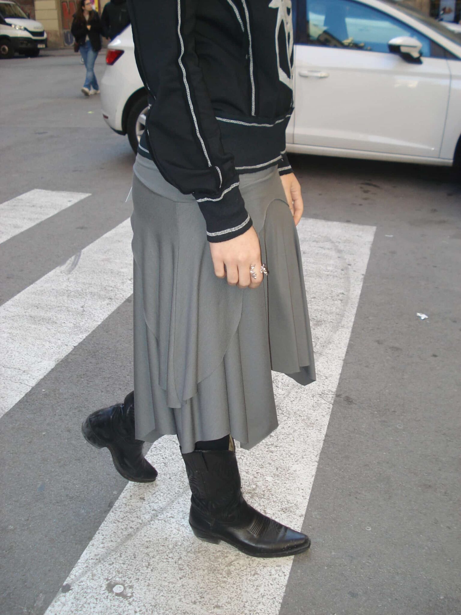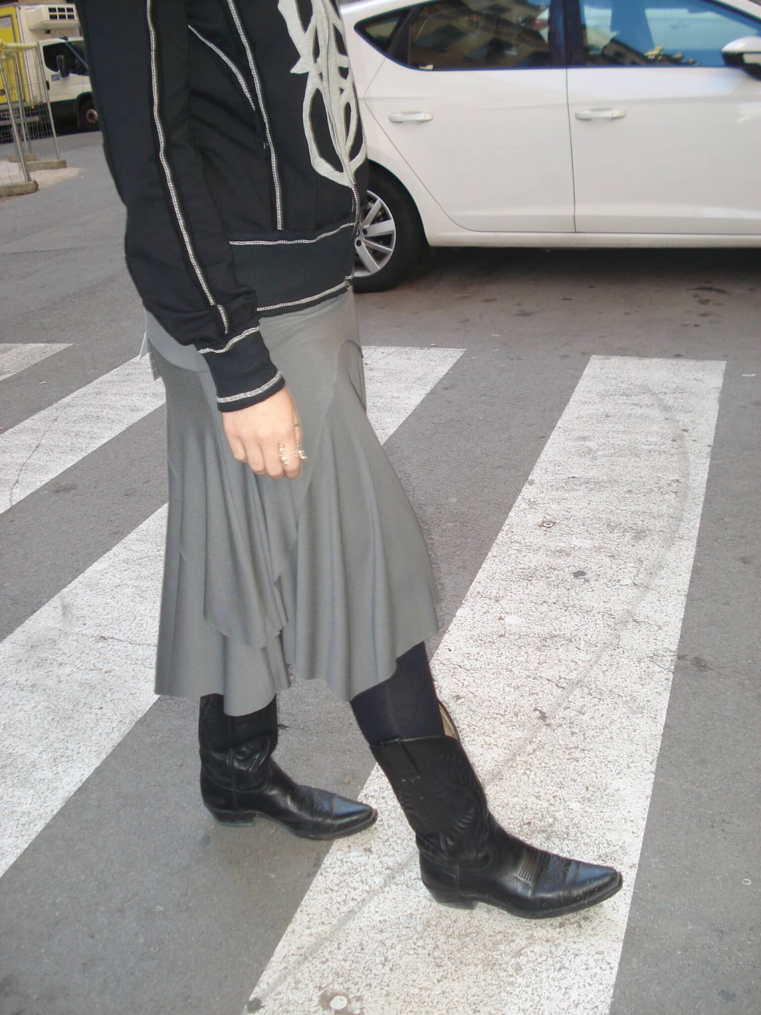 Bias cut panelled skirt with in ultra soft viscose jersey. finished in a raw hem. Elasticized waistband.