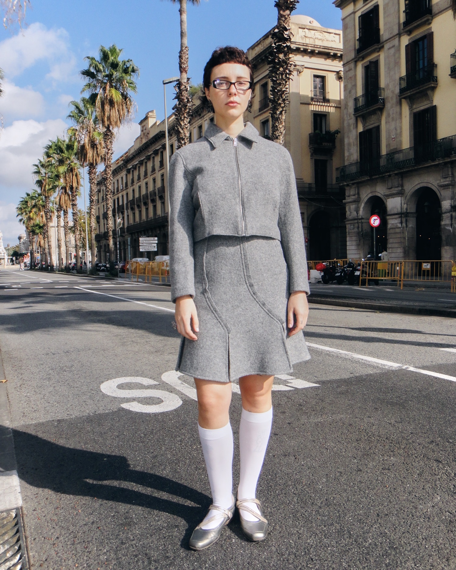 The Winnie skirt in grey is crafted from wool and has curved pleats that create a paneled effect around the skirt. It is designed to be worn slightly higher on the hips and falls into a flattering A-line shape.